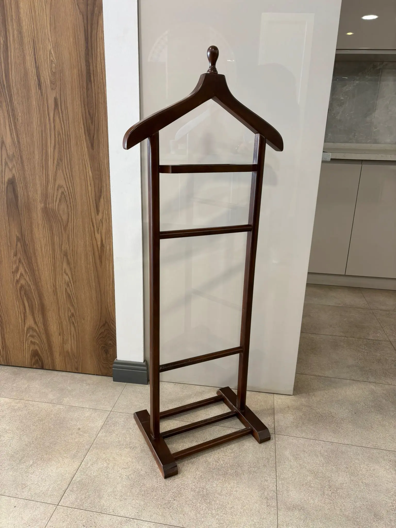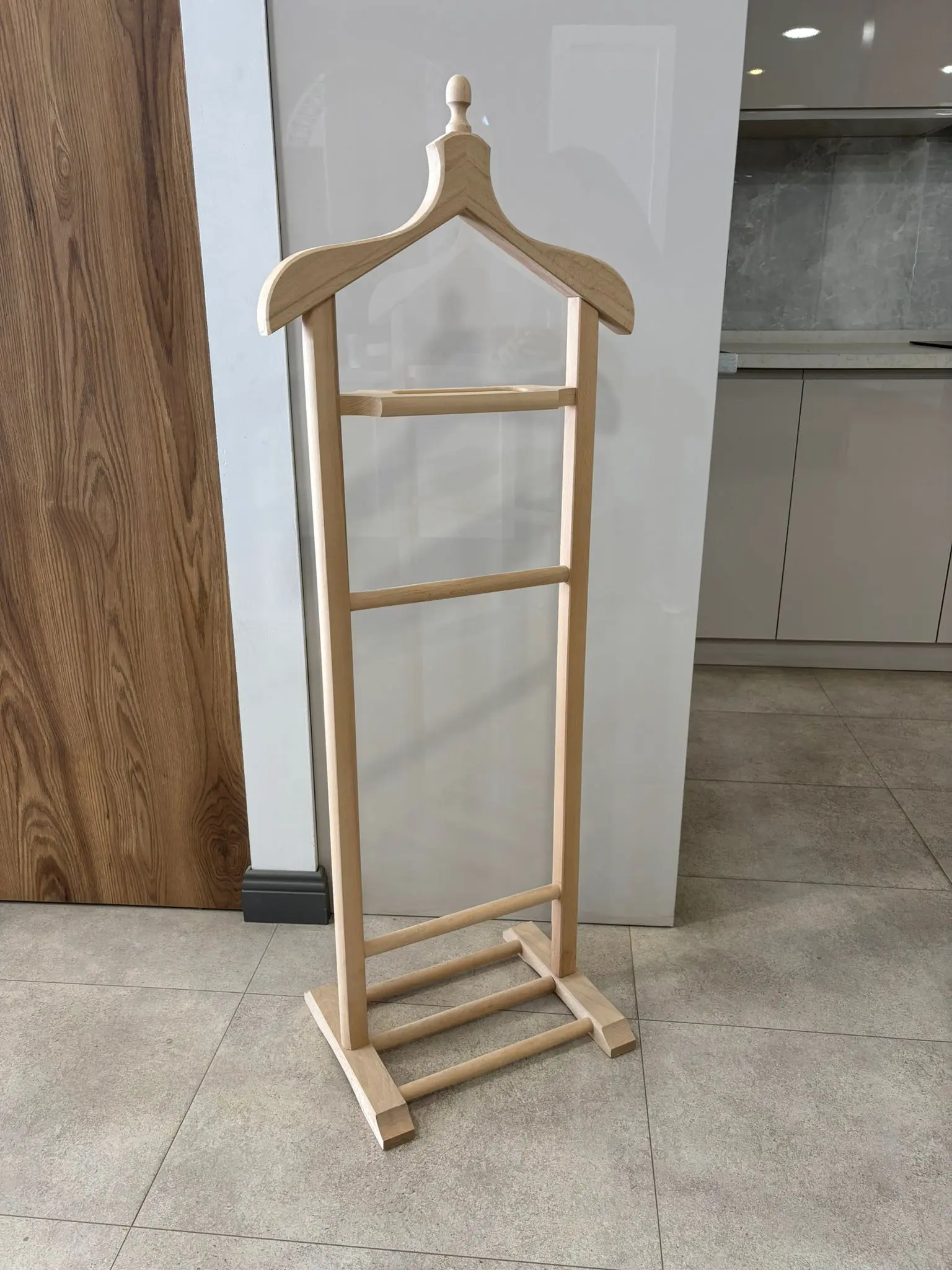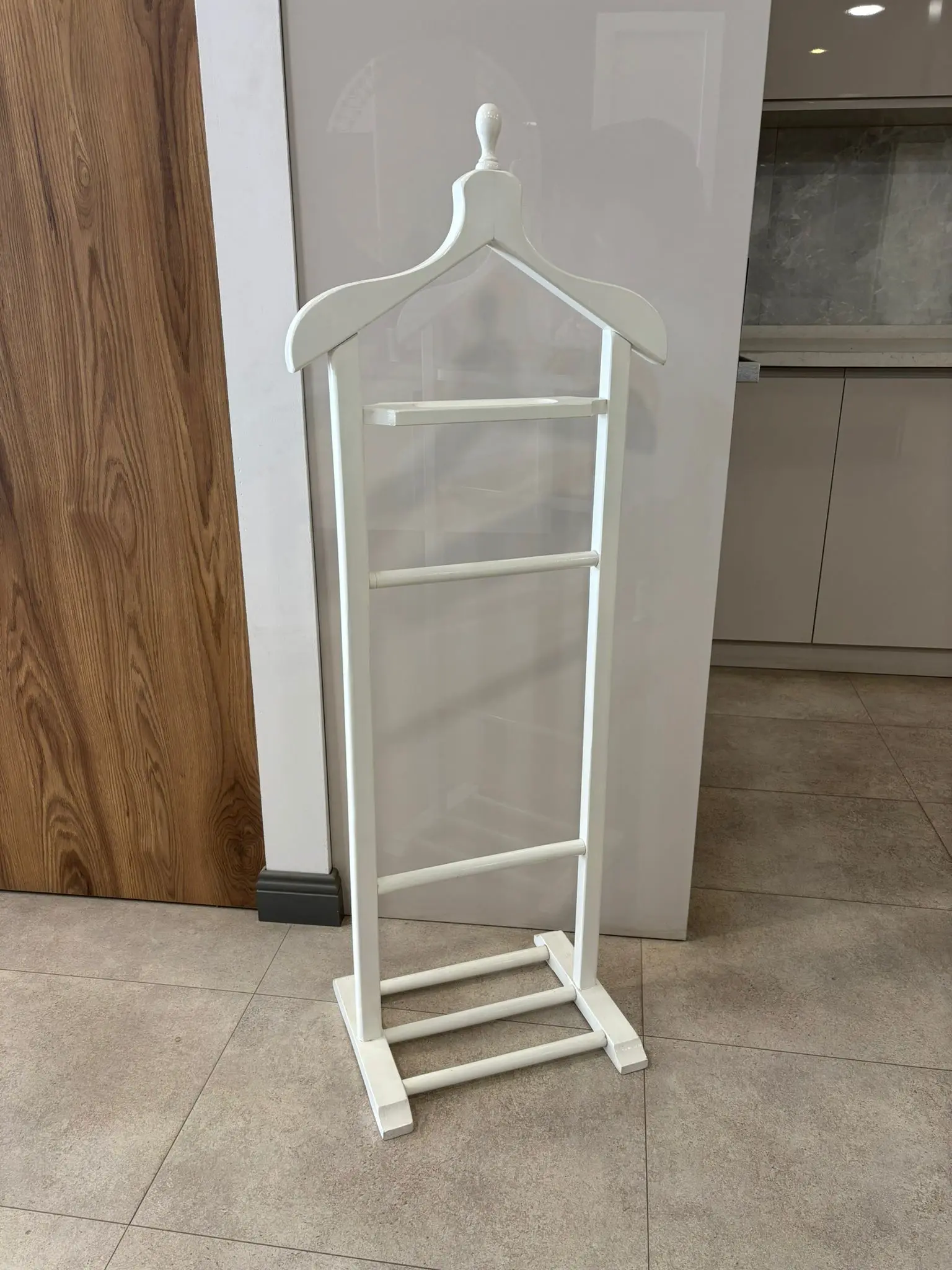 Modern yaşam alanlarında düzeni sağlamanın en şık yolu olan beyaz dilsiz uşak modelimiz, Ankara Siteler kalitesiyle beğeninize sunuluyor. Birinci sınıf fırınlanmış masif gürgen ağacından üretilen ve lake beyaz boyasıyla ferah bir görünüm sunan bu askılık, kıyafetlerinizin formunu gün boyu korur.