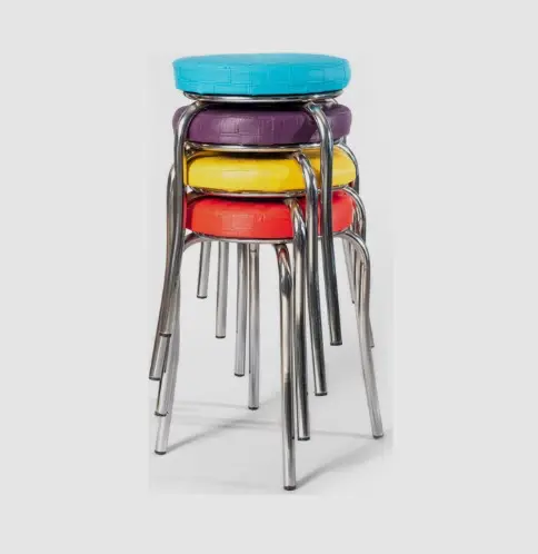 Renkli metal tabure modelleri, özellikle cafe ve restoran dekorasyonlarında estetik ve pratik çözümler sunar. Farklı renk kombinasyonları ile mekanınıza uygun üretim yapılabilir.